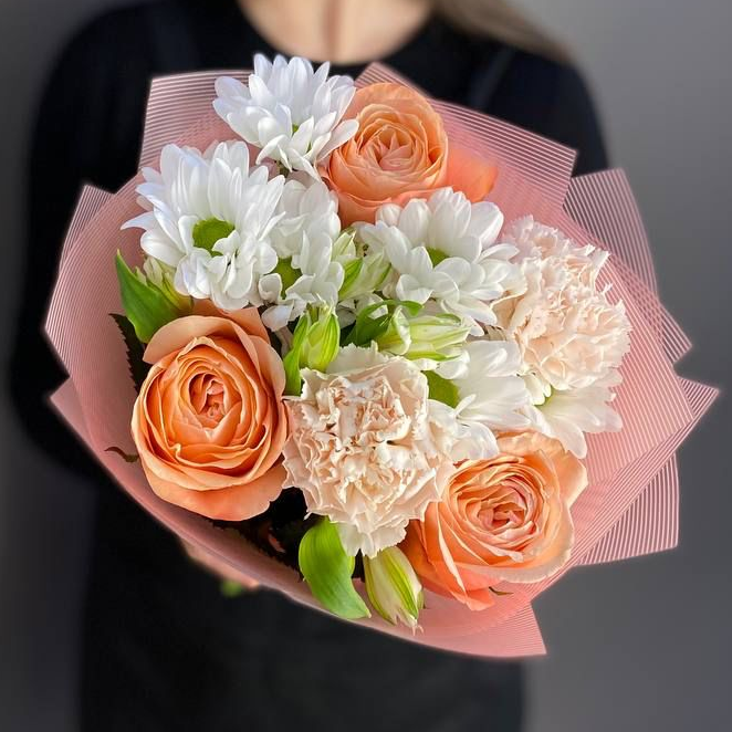 Альстромерия, Гвоздика, Роза, Хризантема кустовая;