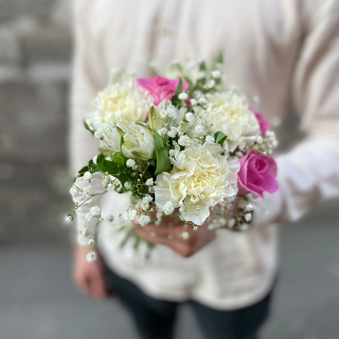 Альстромерия, Гвоздика, Гипсофила, Роза;
