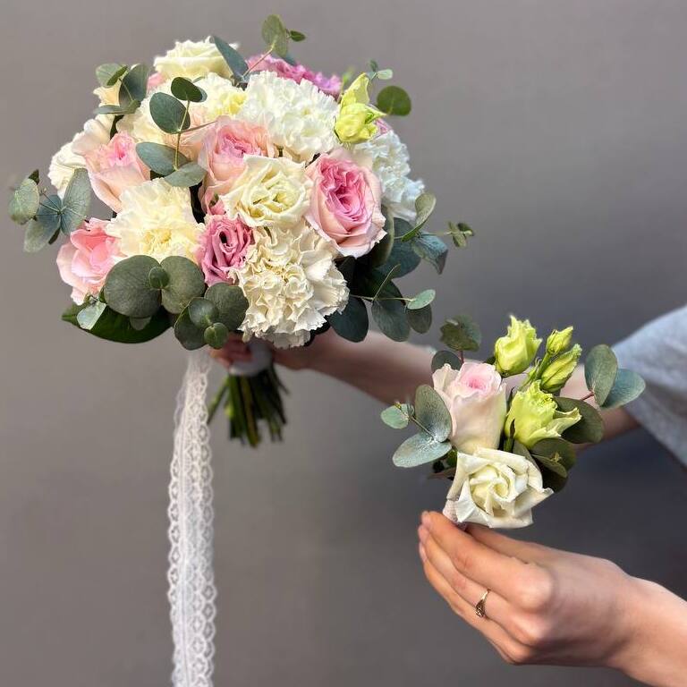 Диантус, Роза, Эвкалипт, Эустома;