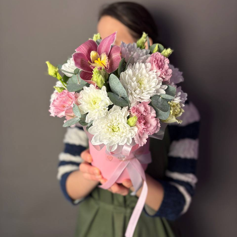 Орхидея , Хризантема кустовая, Эвкалипт, Эустома;