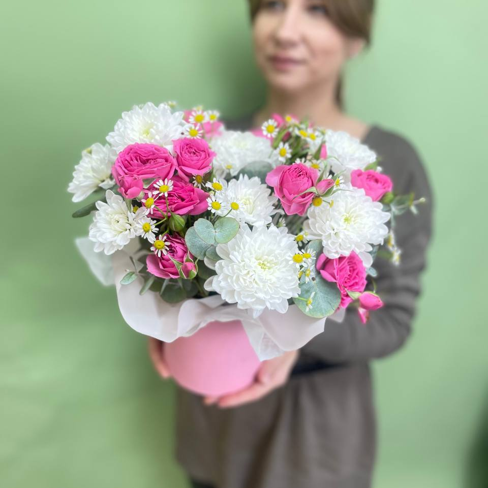 Роза кустовая, Танацетум, Хризантема, Эвкалипт;