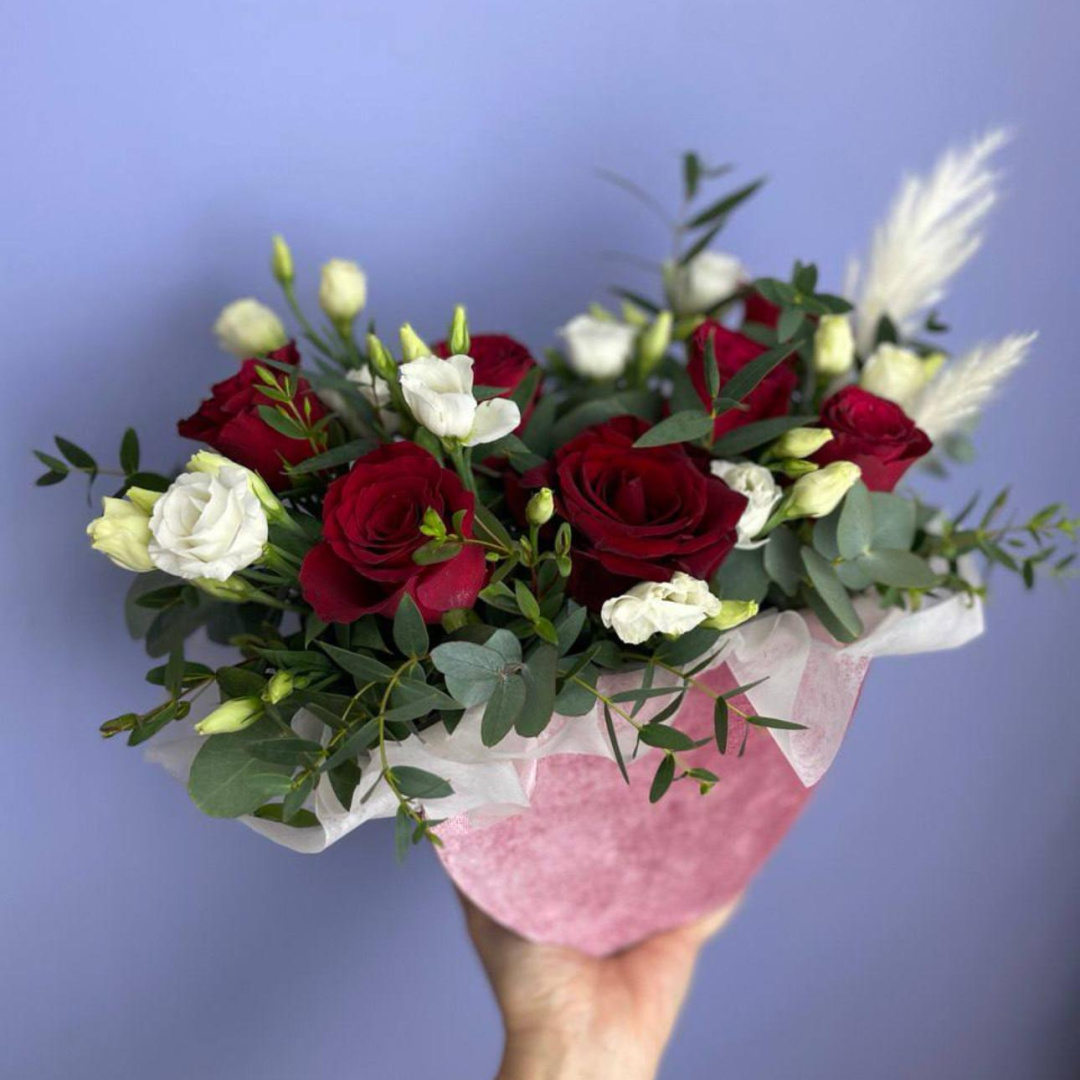 Роза, Сухоцветы, Эвкалипт, Эустома;