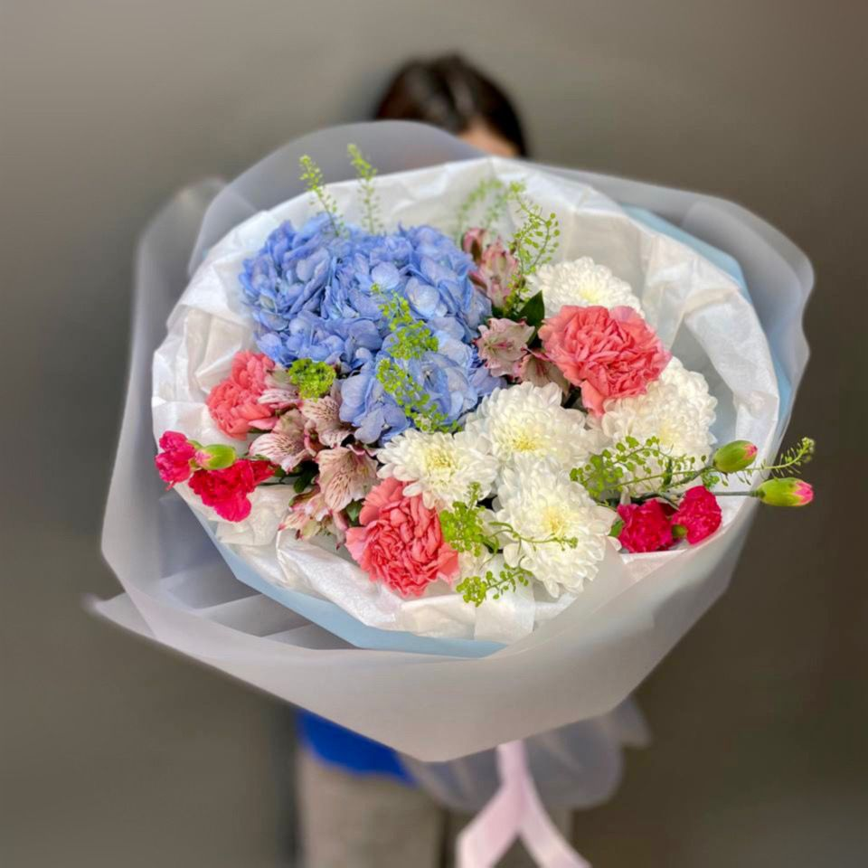 Гвоздика, Гортензия, Диантус, Зелень, Хризантема;