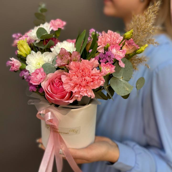 Альстромерия, Диантус, Диантус кустовой, Пампасная трава, Роза, Статица, Хризантема кустовая, Эвкалипт, Эустома;