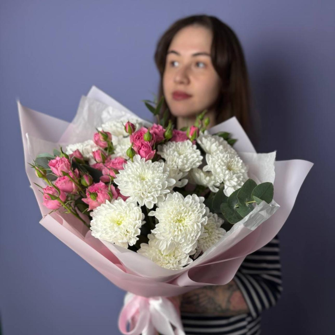 Роза кустовая, Хризантема кустовая, Эвкалипт;