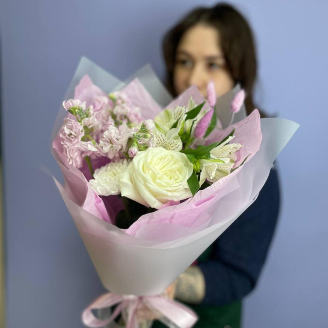 Альстромерия, Лагурус, Маттиола, Роза, Хризантема кустовая;