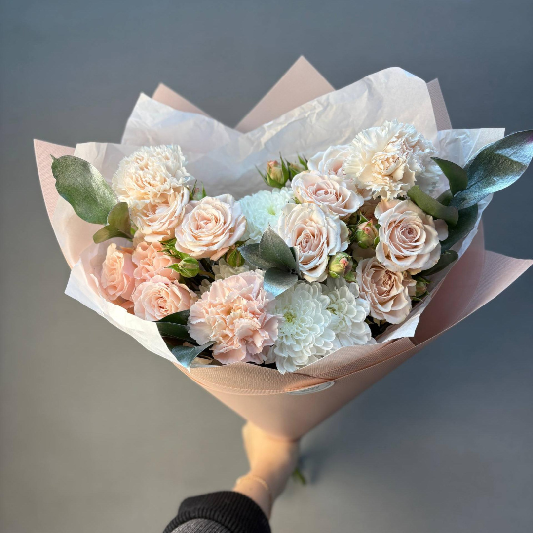 Диантус, Роза кустовая, Рускус, Хризантема;
