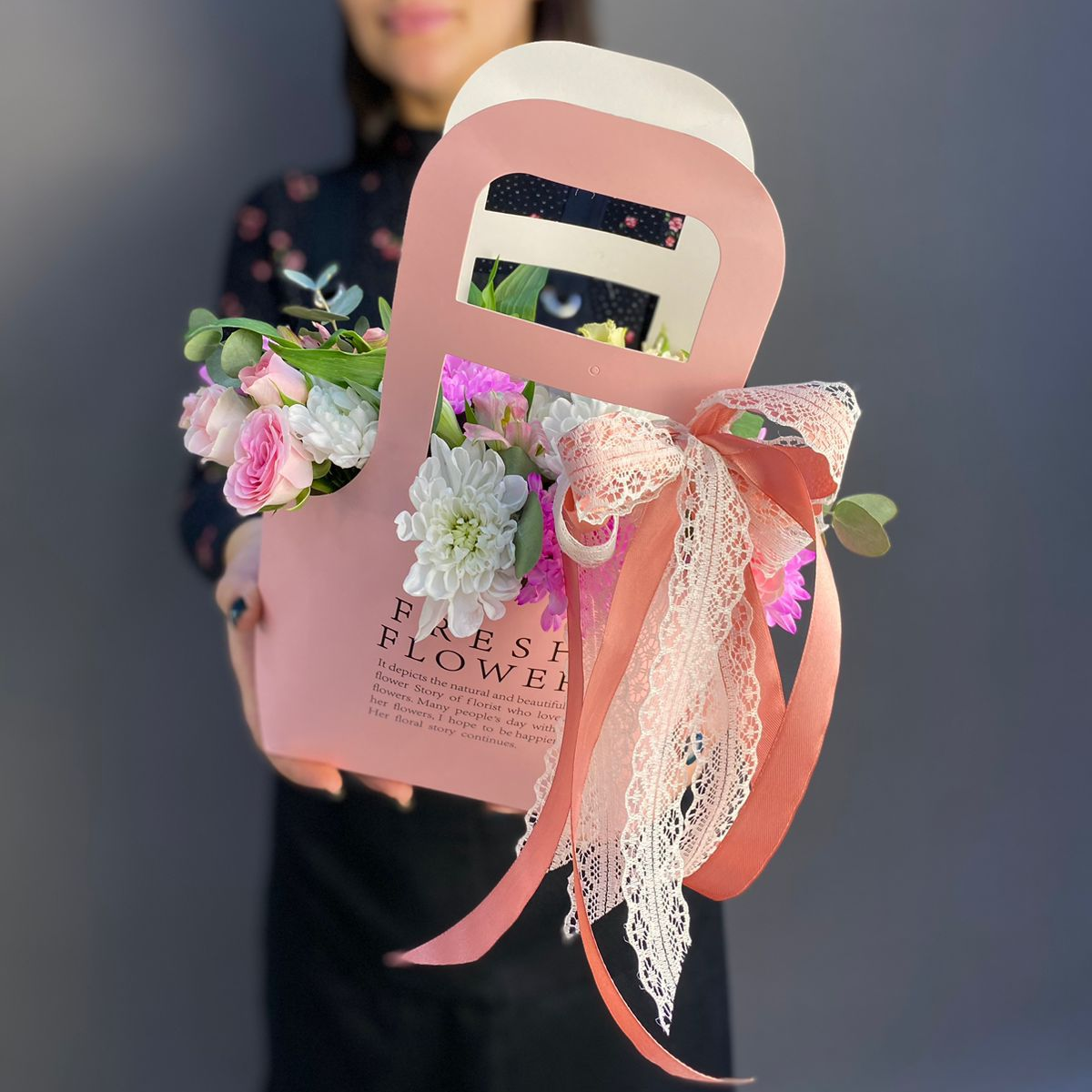 Альстромерия, Зелень, Роза кустовая, Хризантема, Эустома;