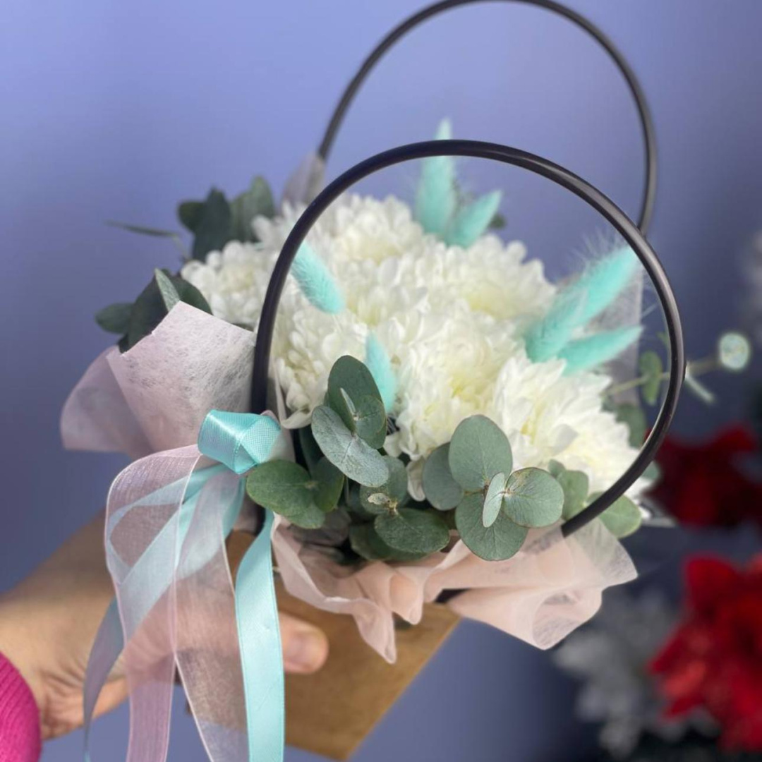 Лагурус, Хризантема кустовая, Эвкалипт;