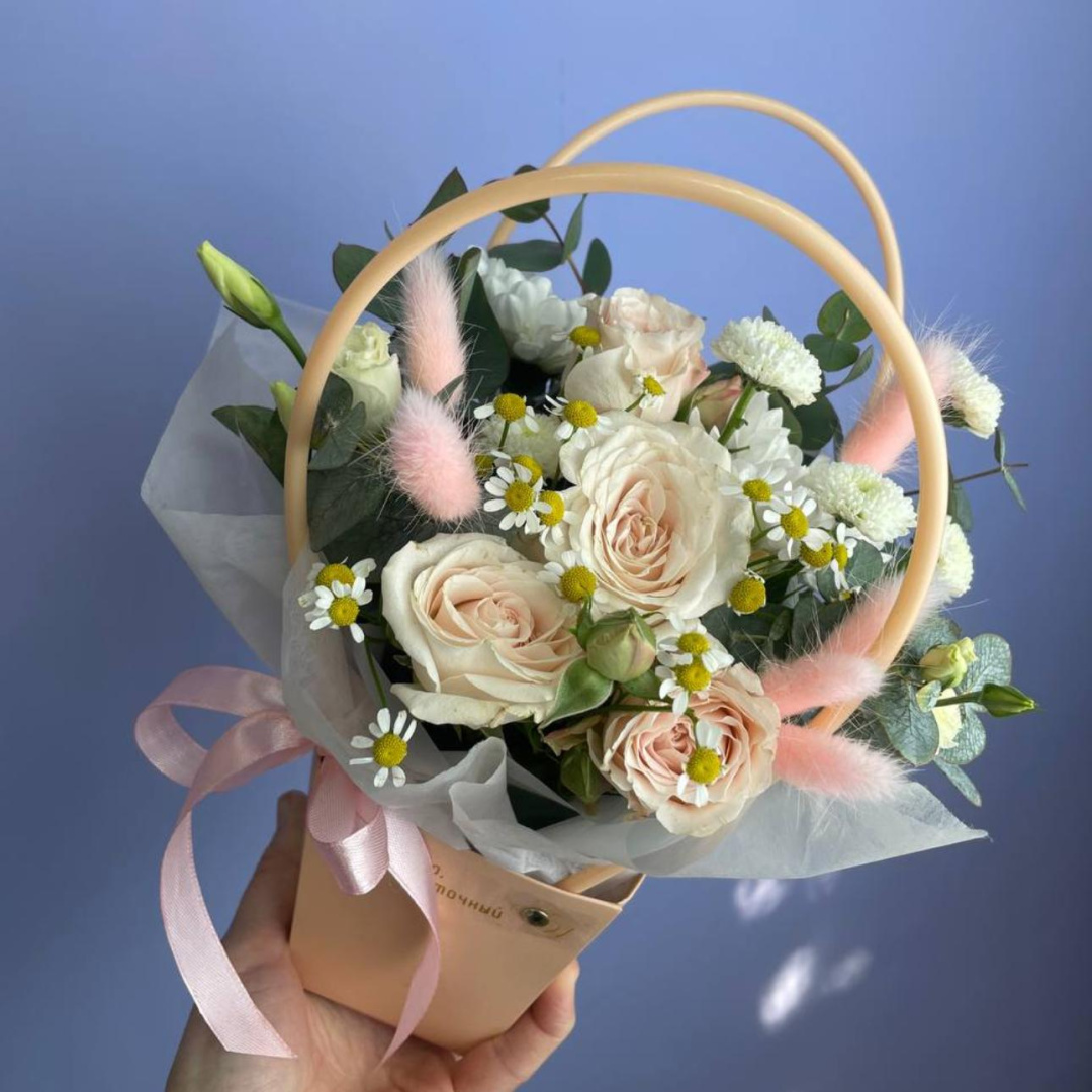 Лагурус, Роза, Сантини, Танацетум, Эвкалипт;