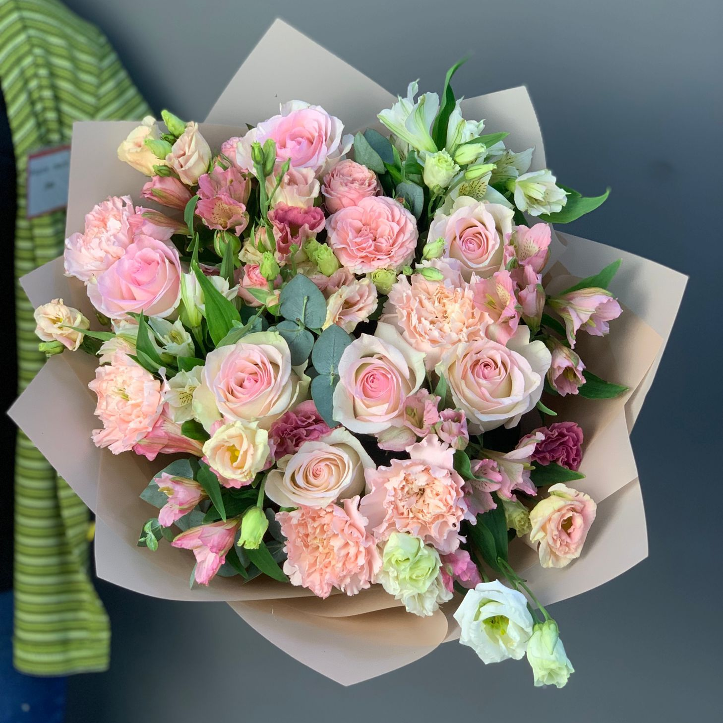 Альстромерия, Диантус, Зелень, Роза, Эустома;